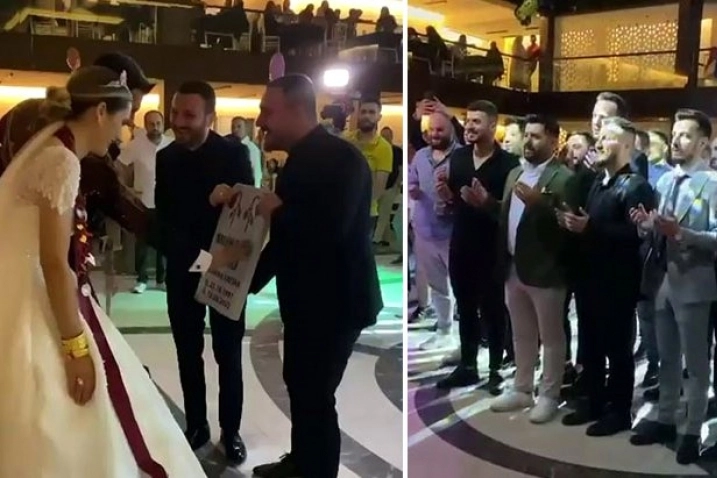 Adapazarı ilçesine bağlı Ozanlar Mahallesi'nde yer alan bir düğün salonunda yaptıkları düğün ile dünya evine girmeye hazırlanan çift, birbirleriyle dans edip akraba ve arkadaşlarıyla oynayarak eğlendi. Ardından geçilen takı töreninde ise davetliler ilginç bir şakaya şahit oldular.