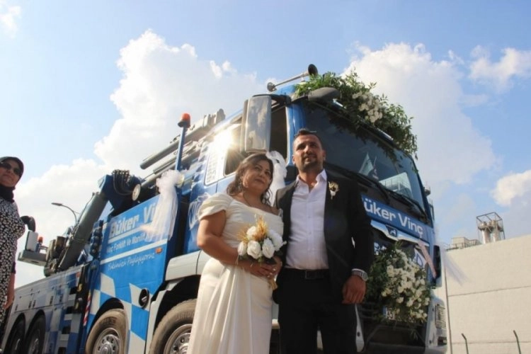 Manisa'nın Yunusemre ilçesine bağlı Kayapınar Mahallesi'nde yaşayan 31 yaşındaki Doğan Çoban ve Funda Akar, Yunusemre Belediyesi Millet Çarşısı'ndaki nikah salonunda dünyaevine girdi. 15 yıldır vinç operatörü olarak çalışan damat Doğan Çoban, gelin aracı olarak da iş makinesi olan vinci tercih etti. Gelini vinçle almaya giden damat Çoban, "Bir arkadaşımız aracılığıyla tanıştık. Sonrasında ileriki günlerde arkadaş olduk. Sonrasında birbirimize güvenimizi, saygımızı kazandık. Birbirimize bağlı olduğumuz için evlenmeye karar verdik. Evlenmeye karar veren arkadaşlarda önce saygı, sevgi ve güven yeterli oluyor. Günümüzde birçok farklı etkinlikler oluyor. Biz de farklı bir şey yapmak için böyle bir düşünceye girdik. Kendimiz için mutluyuz" dedi. Vinçle nikah salonuna giden gelin Funda Akar ise şunları söyledi: "Daha önce bu tür işler görüyorduk. Biz de böyle bir şey yapsak mı diye konuşuyorduk. Bana sürpriz oldu. Beklemiyordum böyle bir şey. Güzel oldu." Vinç ve arkasındaki konvoyla nikah salonuna gelen genç, çift sevdiklerinin huzurunda bir ömür boyu mutluluğa "evet" dedi.