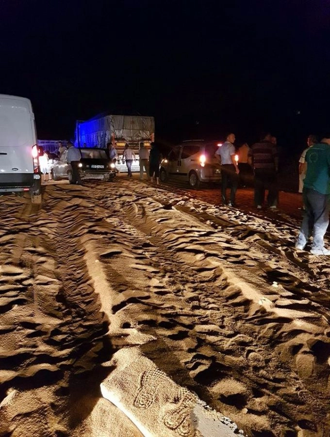 Denizli’nin Serinhisar ilçesinde yem yüklü kamyonun devrilmesi soncu 1 kişi öldü, 2 kişi yaralandı.Edinilen bilgiye göre, Denizli yönünden Acıpayam istikametine seyir halinde olan Zeynel Erkal (52) yönetimindeki plakası alınmayan hayvan yemi yüklü kamyon, Serinhisar ilçesi Çaylıhanı mevkiinde devrildi. Sürücü kimliği ile plakası alınamayan iki araç kamyona çarptı.Kazada ağır yaralanan yem yüklü kamyonun sürücüsü Erkal ile diğer iki aracın sürücüsü, olay yerine gelen sağlık ekipleri tarafından Acıpayam Devlet Hastanesine kaldırıldı. Ağır yaralı olan kamyon sürücüsü Erkal, yapılan müdahalelere rağmen kurtarılamayarak yaşamını yitirdi.Kaza nedeniyle trafik bir süre tek şeritten sağlanırken, yola dökülen yem olay yerine gelen belediye işçileri tarafından temizlendi.Olay ile ilgili başlatılan soruşturma sürüyor.