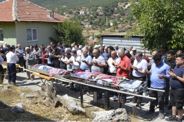 Burdur’un Gölhisar ilçesine bağlı Yeşildere köyüne getirilen cenazeler, buradaki evlerinde helallik alındıktan sonra cenaze namazı için köy meydanına götürüldü.