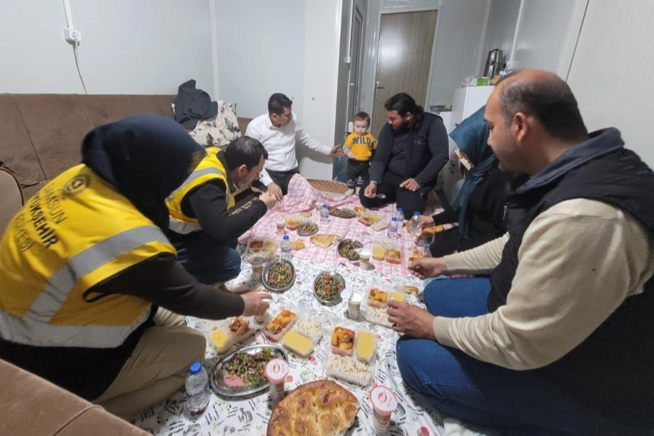 Samsun Büyükşehir Belediyesi, geçen 6 Şubat’ta yaşanan depremin ardından Kahramanmaraş halkına hizmet vermeye devam ediyor. Enkaz kaldırma çalışmalarını sürdüren Büyükşehir Belediyesi ekipleri, binlerce vatandaşa sıcak yemek dağıtıyor. Görevlerini sürdüren personel ağırlayan bölge halkından Yılmaz ailesi, yaşadıkları konteynerde Büyükşehir Belediyesi ekiplerine ‘Teşekkür İftarı’ verdi. Tekstil makinesi ustası Ali Yılmaz, hizmet ve destekleri hayatlarının sonuna kadar unutmayacaklarını söyledi. Samsun Büyükşehir Belediyesi Anakent Turizm Ticaret Şirketi, deprem felaketi nedeniyle konuşlandığı Kahramanmaraş kent merkezindeki Necip Fazıl Kısakürek Kültür Merkezi alanında depremzedelerin yemek ihtiyacını karşılamaya devam ediyor. Ramazan Ayı sebebiyle iftarda vatandaşlara 4 çeşit sıcak yemek dağıtılırken, sahurda da kahvaltı veriliyor. Ekipler sıcak yemek yardımının yanı sıra afetzede vatandaşların diğer talep ve istekleri için de yardıma koşuyor. Büyükşehir ekipleri misafir oldu Samsun Büyükşehir Belediyesi’nin yardımını unutmayan 46 yaşındaki afetzede Ali Yılmaz, günlük yemek ihtiyacını sıcak yemek yardımıyla karşılıyor. Konteynerde ev hanımı eşi ve üniversite sınavına hazırlanan 19 yaşındaki kızıyla birlikte yaşayan 25 yıllık usta Yılmaz, kendisine verilen desteklere teşekkür etmek için Büyükşehir Belediyesi ekiplerini iftar yemeğine davet etti. Samsun Anakent A.Ş. Genel Müdürü Fatih Karaçor ile 2 personel birlikte afetzede ailenin konteynerine misafir oldu. Büyükşehir Belediyesi ekiplerine deprem felaketi sürecinde verdikleri desteklerden dolayı teşekkür eden Ali Yılmaz, "Depremin ilk gününden itibaren boğazımızdan sıcak yemek geçtiyse bu Samsun Büyükşehir Belediyesi ve halkının sayesindedir. Ama yemek bizim için ikinci plandadır. Yüzünü güldüren bir dostun olması daha önemli. Burada çok güzel manevi kardeşlik örneği sergilediler. Verdiğimiz iftarın amacı ise teşekkür etmek içindi ama onlara ne kadar teşekkür etsek az. Samsun’un hakkını asla ödeyemeyiz. Kalbimizde her zaman ayrı yerleri olacak. Rabbim yar ve yardımcıları olsun” dedi. İftar yemeğini kendi elleriyle hazırlayan 43 yaşında ev hanımı Ayşe Yılmaz, "Sağ olsunlar iftarımıza geldiler. Samsun ekibinin her bir ferdine çok teşekkür ediyoruz. Minnet duyuyoruz. Bütün imkanları sağladılar. Her vakit yanımızdalardı. Artık bundan sonra Samsun’u kardeş şehrimiz olarak görüyoruz’’ diye konuştu. Sırbistan’da yaşayan ve deprem nedeniyle gelen Zarife Atmaca, Kahramanmaraşlı olduğunu ve deprem sonrasında destek olmak için Büyükşehir Belediyesi ekipleriyle gönüllü olarak çalıştığını söyleyerek, “Bize sofralarını açan Yılmaz ailesine teşekkür ediyorum. Birlikte iftarımızı yaptık. Çok mutlu olduk. Aynı şehrin insanıyız ama birbirimizi tanımıyorduk. Bu vesileyle aramızda dostluk oluşmuş oldu. Allah razı olsun. İnşallah arkadaşlıklarımız iyi günlerde de ilerler. İnşallah daha iyi günlerde bir araya gelmeyi ümit ediyorum” şeklinde konuştu. Büyükşehir Belediyesi personeli Onurcan Engin ise, “40 güne yakındır buradayım. Kahramanmaraş halkına hizmet etmek çok güzel bir duygu. İftarda da, sahurda da birlikteyiz. Gurur duyuyorum. Ailemiz de bizi şaşırtarak iftara davet etti. Önemli olan yemek değil, birlikte olmaktı. Aile özlemimizi onlarla giderdik. Allah kendilerinden razı olsun” ifadelerini kullandı.