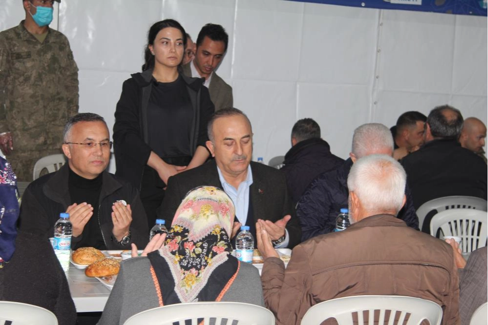 Dışişleri Bakanı Mevlüt Çavuşoğlu, iftarını Kahramanmaraş merkezli depremlerden en çok etkilenen yerlerden olan Gaziantep'in Nurdağı ilçesinde açtı. Kurulan çadır kente gelen Bakan Çavuşoğlu, depremzede vatandaşlarla yakından ilgilendi. Çavuşoğlu, iftarın ardından çadır kenti gezerek, depremzedelerle sohbet etti.