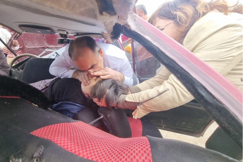Afyonkarahisar’da, seçim gezisi için Sandıklı ilçesine giden AK Parti Afyonkarahisar Milletvekili Adayı Dr. Hasan Arslan, iki aracın karıştığı kazayı görünce konvoyunu durdurup yaralılara müdahale etti. Araç içerisinde sıkışan yaralıların çıkaran Arslan, bir yaralıya suni teneffüs ve kalp masajı yaparak hayata tutunmasını yardım etti. Olay, Afyonkarahisar-Antalya karayolunun 50. kilometresinde Çiğiltepe Kavşağı yakınlarında meydana geldi. Edinilen bilgilere göre, bölgeye seçim gezisine giden Arslan, iki aracın karıştığı trafik kazasını görünce konvoyunu durdurarak yardıma koştu. Dr. Arslan, çarptıktan sora bariyerlere vurarak durabilen ve ikiye bölünün Tofaş araçtaki yaralıları çıkarıp ardından araç içerisinde sıkışan ve durumu ciddi olan bir yaralıya 112 Acil servis ekipleri gelinceye kadar müdahale etti. Arslan, ismi öğrenilmeyen yaralıya suni teneffüs yapıp, ardından kalp masajı yaparak hayatta kalmasını sağladı. Daha sonra bölgeye gelen sağlık ekiplerinin ekipmanlarını alan Arslan, yaralıya müdahaleye devam edip, sonrasında ambulansa konulmasına yardımcı oldu. Ortalığın savaş alanına döndüğü kazada yaralıların ve kimliklerinin belirlenmesi için polis ekipleri tarafından başlatılan çalışmalar devam ediyor.
