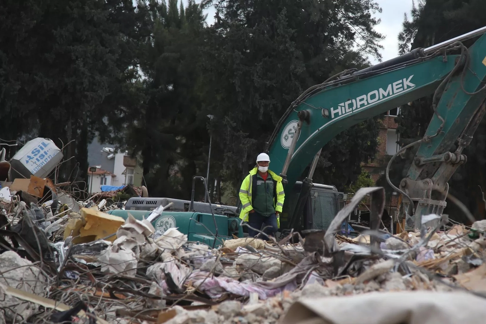 Enkazın kaldırılması, yaraların bir an önce sarılması için çalışmalarını yoğun sürdüren ekipler, enkazın molozlarını döküm sahasına taşıyor.