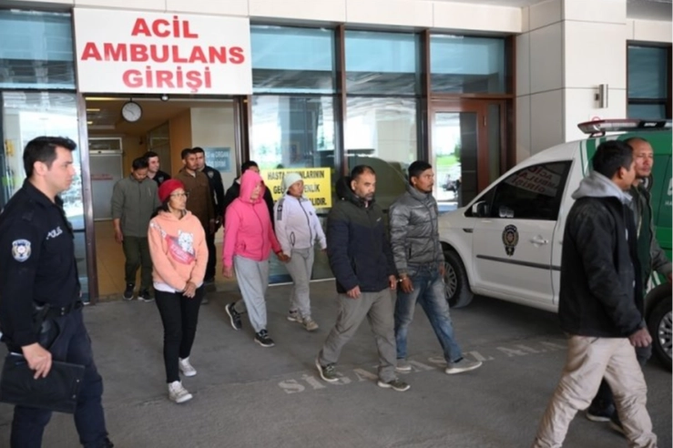 Sultan 1. Murat Devlet Hastanesi'ndeki sağlık kontrolünün ardından polis merkezine götürülen düzensiz göçmenler, işlemlerin ardından İl Göç İdaresi Müdürlüğüne teslim edilecek.