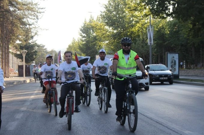 Hür Dava Partisi (HÜDA PAR) Elazığ Gençlik Kolları, İsrail’in Mescid-i Aksa’ya yönelik ihlallerine tepki göstermek amacıyla "Kudüs İçin Yola Çık" sloganıyla pedal çevirdi. Hazardağlı Kavşağı’nda başlayan bisiklet turu, Ahmet Aytar Meydanı’nda sona erdi. Filistin bayrakları ile yapılan turda İsrail’e karşı sloganlar atıldı.İsrail’i, aldığı kararlar ve uygulamalarından dolayı lanetlediğini belirten HÜDA PAR Elazığ Gençlik Kolları Başkanı Yasin Kavaklı, "Dünya Müslümanları, Siyonist emellere sahip İsrail’in bu tasarruflarına karşı çıkmazsa, işgalci rejimin bundan cesaret alarak atacağı bir sonraki adım, Mescid-i Aksa’dan Müslümanları tamamen men etmek olacaktır. Bu nedenle gençlik olarak bu yaşananlara sessiz kalmama ve Mescid-i Aksa’ya duyarlılığı artırma adına bisiklet turu düzenleyerek, dünya kamuoyunun da sessiz kalmaması çağrısında bulunuyoruz" dedi.Mescid-i Aksa’nın hakimiyetinin Müslümanların elinden çıktıktan sonra ümmet ruhunun iyiden iyiye kaybolduğunu dile getiren Kavaklı, "Mescid-i Aksa’da yaşananlar ümmet ruhunun kayboluşunun ispatıdır. Bizler cesaretimizi yitirdiğimiz, birlik ruhumuzdan ayrıldığımız ve onların bize karşı merhamete gelmesini beklediğimiz için, onlar gittikçe gazaba geliyorlar. Siyonist çete İsrail’in korkması için karşılarına yeniden Selahattinlerin dikilmesi gerekiyor. İnşallah o Selahattinler yola çıkmıştır. Kudüs’e varmaları inşallah çok uzun zaman almayacaktır” ifadelerini kullandı.