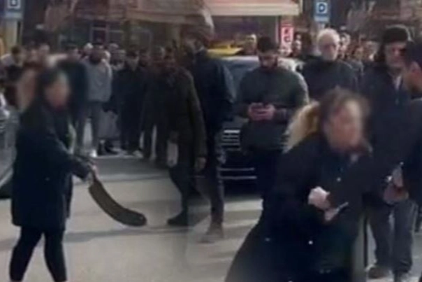 Olay, Atatürk Bulvarı üzerinde meydana geldi. İddiaya göre, elinde satır olan Fatma D., yolu kesip bağırmaya başladı. Kısa sürede toplanan kalabalık, kadını sakinleştirmeye çalıştı.