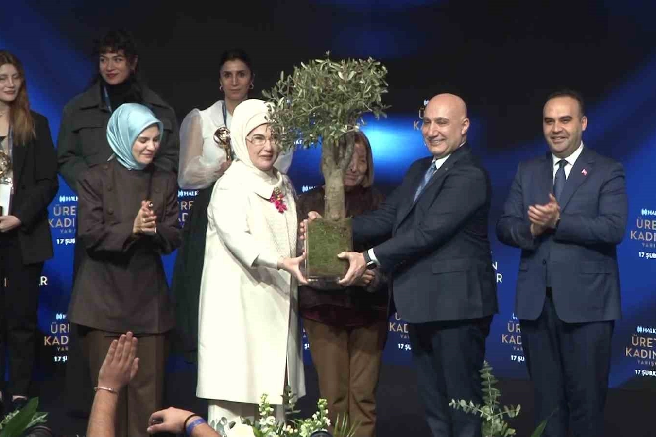 Kadınların ekonomideki gücünü ve girişimcilik dünyasındaki başarılarını görünür kılmak, onları cesaretlendirmek ve potansiyellerini ortaya çıkarmalarına destek olmak amacıyla düzenlenen Halkbank Üreten Kadınlar Yarışması Ödül Töreni’nin dördüncüsü bugün İstanbul Finans Merkezi Halkbank Genel Müdürlüğü, İstanbul Konferans Salonu’nda gerçekleştirildi. Törende yapılan konuşmaların ardından ödüle layık görülen kadın girişimcilere ödülleri takdim edildi. Ödül törenine Cumhurbaşkanı Recep Tayyip Erdoğan’ın eşi Emine Erdoğan, Aile ve Sosyal Hizmetler Bakanı Mahinur Özdemir Göktaş, Sanayi ve Teknoloji Bakanı Mehmet Fatih Kacır, Halkbank Genel Müdürü Osman Arslan katılım gösterdi.
