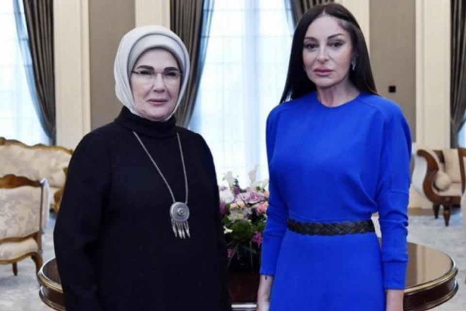 Mehriban Aliyeva ile önemli konuların ele alındığı görüşme sonrası Emine Erdoğan sosyal medyadan paylaşım yaptı; Azerbaycan Cumhurbaşkanı'nın değerli eşi, dostum Mehriban Aliyeva ile bir araya geldik.