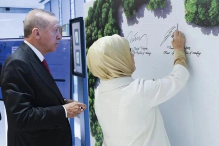 Emine Erdoğan'ın Twitter hesabından yaptığı paylaşım şu şekilde: Sıfır Atık hareketinin küreselleşme yolculuğunun ilk adımı olan Sıfır Atık İyi Niyet Beyanı’nı BM Genel Sekreteri Sayın Guterres ile beraber imzaya açtık.