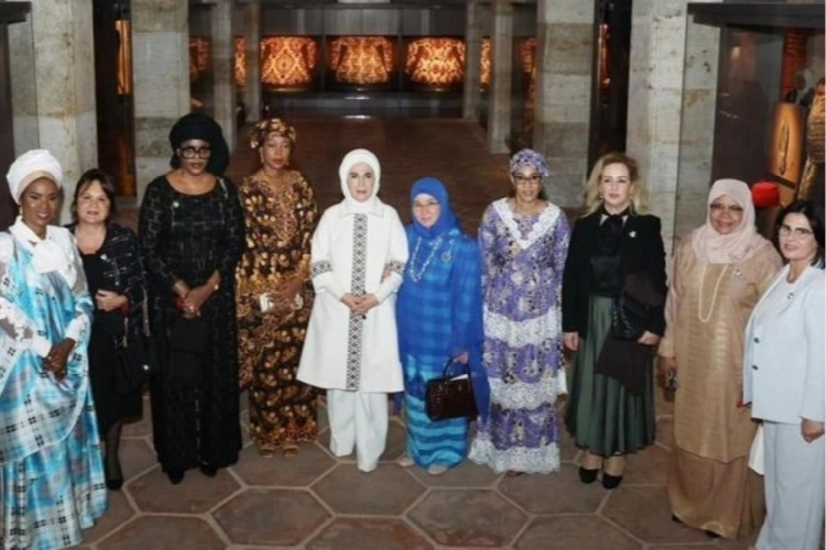 Ziyarette, Malezya Kraliçesi Tunku Azizah Aminah Maimunah Iskandariah, KKTC Cumhurbaşkanı Ersin Tatar'ın eşi Sibel Tatar, KKTC Başbakanı Ünal Üstel'in eşi Zerrin Üstel, Gambiya Cumhurbaşkanı Adama Barrow'ın eşi Fatoumatta Bah Barrow, Arnavutluk Cumhurbaşkanı Bajram Begaj'ın eşi Armanda Begaj, Sierra Leone Cumhurbaşkanı Julius Maada Bio'nın eşi Fatima Maada Bio, Burundi Cumhurbaşkanı Evariste Ndayishimiye'nin eşi Angeline Ndayishimiye, Senegal Cumhurbaşkanı Macky Sall'in eşi Marieme Faye Sall ve Mozambik Devlet Başkanı Filipe Jacinto Nyusi'nin eşi Isaura Nyusi yer aldı. First laydler, Emine Erdoğan ile birlikte Fatih Köşkü'nde bulunan balkondan İstanbul Boğazı'nın manzarasını izledi.
