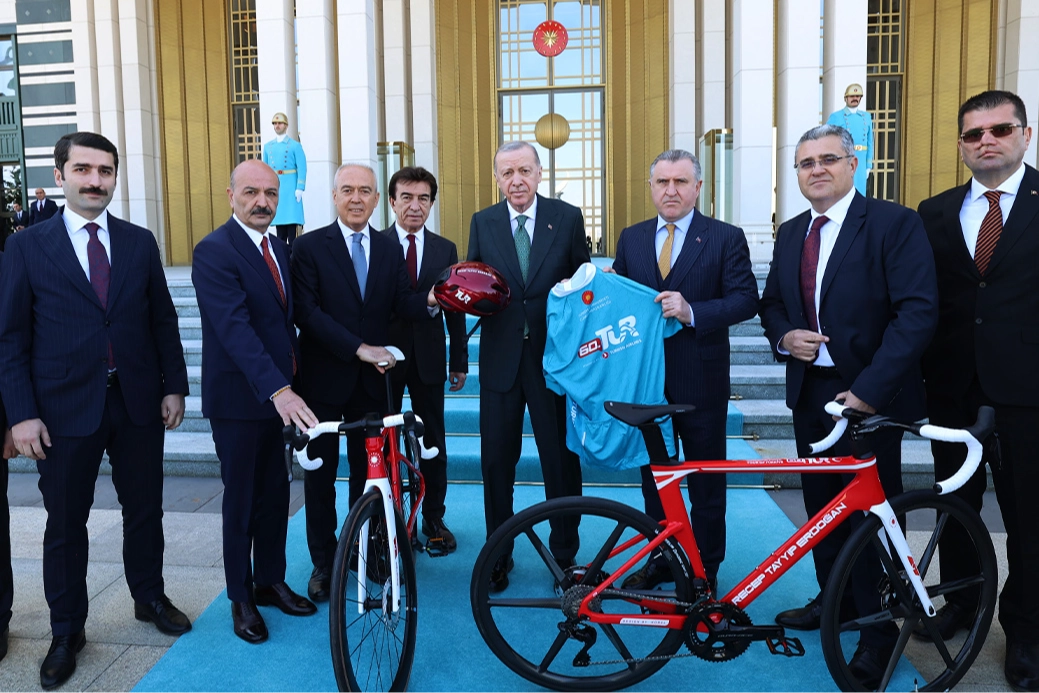 Cumhurbaşkanı Recep Tayyip Erdoğan, 27 Nisan-4 Mayıs tarihlerinde düzenlenecek "60. Cumhurbaşkanlığı Türkiye Bisiklet Turu"nun tanıtımı dolayısıyla Gençlik ve Spor Bakanı Osman Aşkın Bak, Türkiye Bisiklet Federasyonu Başkanı Emin Müftüoğlu, Federasyon yönetimi ve millî sporculardan oluşan heyeti kabul etti.