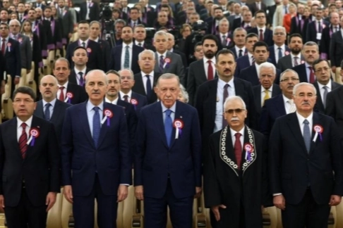 Anayasa Mahkemesi Yüce Divan Salonu'nda gerçekleştirilen törene gelişinde Anayasa Mahkemesi Başkanı Kadir Özkaya tarafından karşılanan Cumhurbaşkanı Erdoğan, daha sonra törenin düzenlendiği salona geçti.