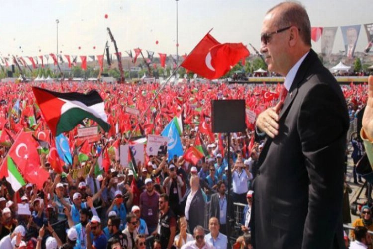 Bugün Yenikapı özellikle farklı müstesna bir günü yaşıyor. Kalbi Kudüs için atan, öfkesi Kudüs için kabaran, yüreği Kudüs için yanan yüz milyonların sesi olarak bugün Yenikapı'da bulunan tüm kardeşlerimi en kalbi duygularımla selamlıyorum. Mitingimize iştirak eden MHP Genel başkanı olmak üzere BBP genel başkanına, siyasi partilerin temsilcilerine özellikle saygılarımı sunuyorum. KUDÜS BİR SEMBOLDÜR İsrail zulmü karşısında sadece ve sadece yüreklerindeki imanın gücüyle mücadele den Filistinli kardeşlerimizi özellikle selamlıyorum. Kudüs sadece bir şehir değildir. Kudüs bir semboldür. Bir imtihandır. Kudüs kıbledir. İlk kıblemizi koruyamazsak son kıblemizin geleceğine güvenle bakamayız. Açık konuşmak gerekirse İslam dünyası Kudüs imtihanında sınıfta kalmıştır. Sadece İslam dünyası değil tüm insanlık da Kudüs imtihanında sınıfta kalmıştır.