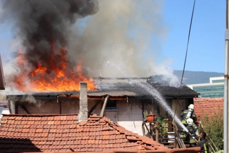 Yangın, saat 13.30 sıralarında Köroğlu Mahallesi Karga Tepesi Sokak'ta 2 katlı evin üst katında meydana geldi.