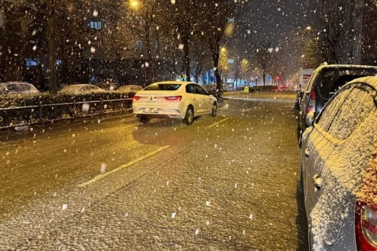 Kar yağışı bazı kara yollarının zeminini beyaza bürüdü. Sürücüler araçlarıyla trafikte kontrollü bir şekilde ilerledi.