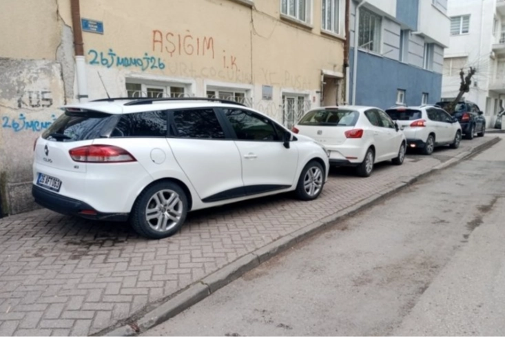 Akarbaşı Mahallesi'nde kuralsız sürücüler tarafından kaldırımlara park edilen araçlar dikkat çekti.