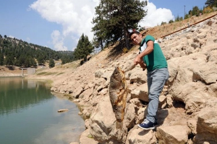Mersin’in Erdemli ilçesinde bin 480 rakımlı Tozlu Göleti kıyısında yaklaşık 10 kilo ağırlığında onlarca balık ölü bulundu. Vatandaşlar balıkların ölüm sebebinin araştırılmasını istiyor.Etrafı mesire alanı olan gölet çevresine piknik için gelen vatandaşlar gölet kıyısında onlarca balığı ölü halde buldu.Gölet çevresinde onlarca balığın öldüğünü fark edince büyük şok yaşadığını anlatan Hızır Serin, "Gölet çevresinde yaklaşık 10 kilo gelen balıklar var, hatta yol kenarına gelenler tarafından görülmesi için çıkarılan balıklar var. Su çekilmiş olsa bile yine balıklar suya girme şansı olur ama, büyük ihtimalle bunun altında başka bir etken var" dedi.Ailesiyle gölet çevresine piknik yapmak için geldiğini belirten Serin, "Piknik için buraya geldik. Göletin kenarını dolaşırken onlarca balığın ölü olduğunu gördük. Bunların yaklaşık 9-10 kilo arasında olması ve çok sayıda bulunması şaşırtıcı. Suda bir oksijensizlik ya da başka bir şey var. Yetkililerin bir an önce araştırması ve önlem alması gerekiyor" diye konuştu.Gölet etrafındaki ölmüş balıkları görünce hayretler içinde kaldıklarını dile getiren Serin, "9-10 kilo arasında çok sayıda balık gördük. Gölet kenarında ilaç atıkları var. Yetkililer bunu araştırmalı ve vatandaşlara bilgi vermeli. Gerekli önlemlerin alınması gerekiyor. Çevreye karşı da biraz daha duyarlı olmalıyız. Çevre halkı olarak da duyarlı olmalıyız. Sonuçta onlar da bir hayvan ve can taşıyor. Eğer avlanılarak yapılıyorsa bu şekilde yapılmaması lazım" şeklinde konuştu.Vatandaşlar yetkililerden balıkların çevre kirliliğinden mi yoksa kaçak avlanmadan mı kaynaklı öldüklerinin belirlenerek tedbir alınmasını istiyor.
