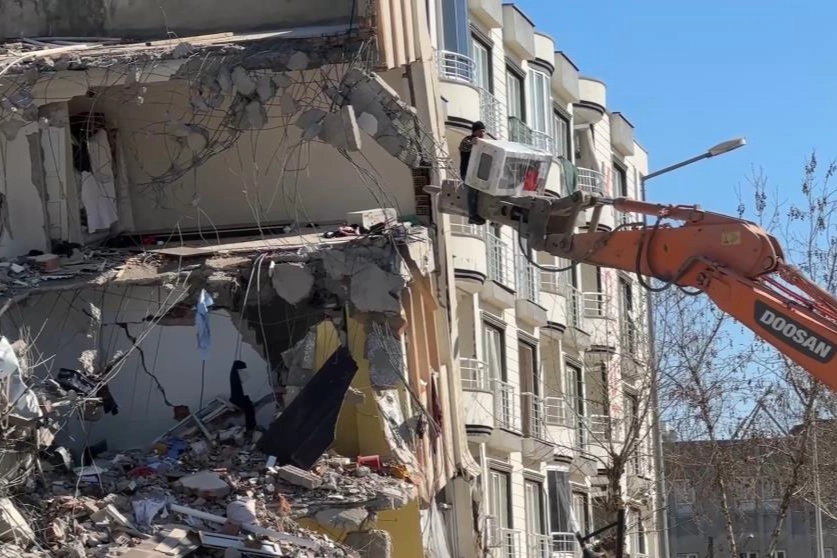 Depremin vurduğu Adıyaman’da canlarını zor kurtaran vatandaşlar bu kez de eşyalarını kurtarmanın telaşına düştü. Binlerce yapının yıkıldığı ve ağır hasar aldığı Adıyaman’da, acil yıkılması gereken binaların yıkımı sürüyor. Bir taraftan yıkım sürerken diğer taraftan insanlar hayatlarını hiçe sayarak sağlam kalan eşyalarını kurtarmak için her türlü yolu deniyor. Bahçelievler Mahallesinde acil yıkım kararı bulunan 5. katlı bir binanın yıkımı esnasında bina sakinlerinden bir kişi çeyizlik eşyası olan çamaşır makinesini almak istedi. Ekskavatörün ucunda yarısı yıkık olan dairesine çıkan bu kişi, çamaşır makinesini ekskavatörün üzerine yerleştirdi. Kendisi de ekskavatörün üzerine oturan ve şahıs çamaşır makinesini tutarak ekskavatörün üzerinde aşağı indirdi. İzleyenler gördükleri manzara karşısında şaşkına dönerken, ortaya çıkan görüntü ‘pes’ dedirtti.