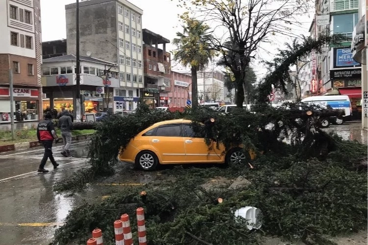 Ardeşen ilçesinde fırtına nedeniyle bazı ağaçlar devrildi. Ardeşen merkezde bulunan ağaç fırtına nedeniyle devrilerek taksi durağına çarptı.