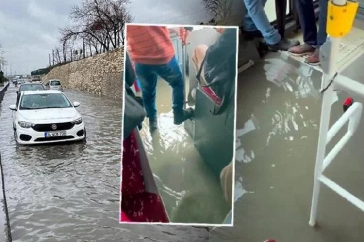 Yolda ilerleyen bir İETT otobüsünün içine de su girdi. Yolcular basamak ve koltuk kenarlarına çıkarak ıslanmaktan kaçmaya çalıştı.