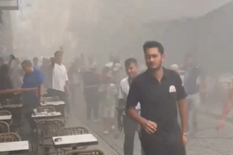 Vatandaşların yoğun dumanın etkisiyle bölgeden ayrıldığı anlar sosyal medyaya yansıdı.