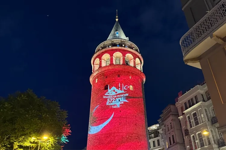 İstanbul'un fethinin 572. yılı dolayısıyla akşam saatlerinden itibaren, Galata Kulesi'nde özel ışık gösterisi gerçekleştirildi.