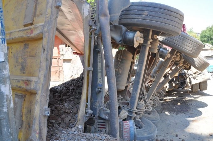 Gaziantep’in İslahiye ilçesinde hafriyat yüklü kamyon, sürücüsünün direksiyon hakimiyetini kaybetmesi sonucu yan yattı. Kamyonun büyük hasar gördüğü kazada, hafriyatlar ise sokağa saçıldı.Edinilen bilgiye göre, saat 12.00 sıralarında İslahiye Derviş Paşa İlköğretim Okulu önüne hafriyat taşıyan Bayram G. idaresindeki 27 SV 698 plakalı kamyon, dar sokakta hafriyatın boşaltıldığı esnada yan yattı. İslahiye Belediyesine ait olan kamyonun alt yapı çalışmaları için hafriyat taşıdığı öğrenilirken, sürücü Bayram G. kazadan yara almadan kurtuldu. Kamyonun damperindeki hafriyatların etrafa saçıldığı kazanın ise yükün dengesiz yüklenmesi nedeniyle meydana geldiği tahmin ediliyor.Kamyonda maddi hasarın meydana geldiği kazanın ardından, damperdeki hafriyat iş makineleri tarafından boşaltıldı.