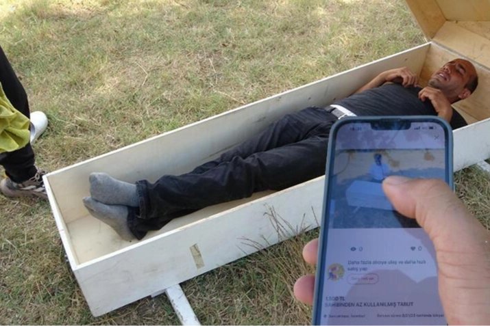 Pendik’te bir organizasyon şirketinde çalışan Yücel Korkmaz, tiyatro oyunlarında kullandıkları tabutu internet sitesi üzerinden satışa çıkardı. 'Sahibinden satılık az kullanılmış tabut’ ilanını gören vatandaşlar şaşkınlıklarını gizlemeyerek ilan sahibine mesaj attı. Kimileri ilan sahibi Korkmaz ile fiyat pazarlığına girdi, bazıları ise 'Bize ölümü hatırlattın' mesajları attı.