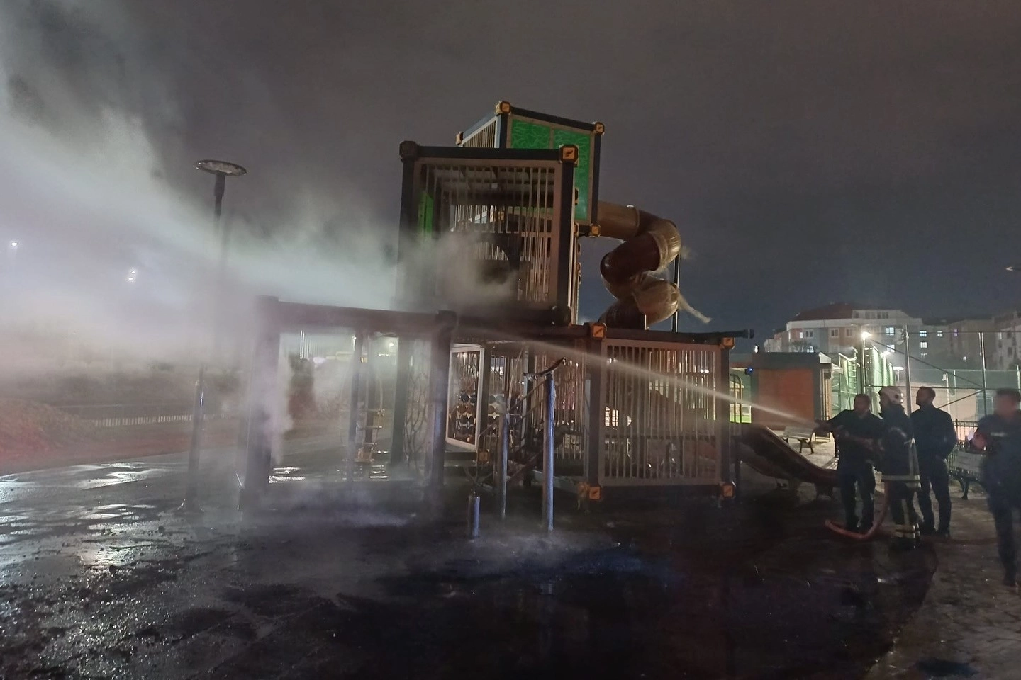 Çerkezköy ilçesi Yıldırım Beyazıt Mahallesi’nde yer alan Kavakdere Kent Parkı’nda bulunan oyun grupları, kimliği henüz belirlenemeyen kişilerce akşam saatlerinde ateşe verildi. Alevlerin kısa sürede büyümesiyle mahalle sakinleri, durumu itfaiyeye bildirdi. Olay yerine hızla intikal eden itfaiye ekipleri, yangını büyümeden kontrol altına alıp söndürdü. Yangında parkın oyun grupları tamamen kullanılamaz hale gelirken, büyük maddi zarar oluştu.