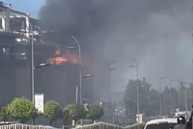 Dış cepheyi kaplayan alevler nedeniyle, bölgede araç trafiği oluştuğu görüldü.