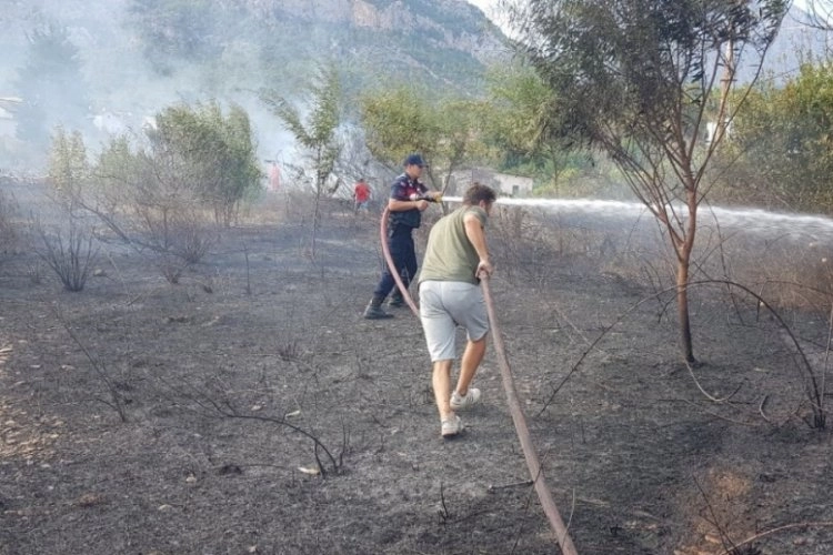 Göynük Mahallesi Başkomutan Atatürk Caddesi üzerindeki işyerlerinin bulunduğu binaların arka kısmında başladığı belirtilen yangın, kuvvetli rüzgarın etkisiyle kaldırımlarda bulunan palmiye ağaçlarına sıçradı. Yangında üst katları metruk, alt katlarında ise giyim mağazalarının bulunduğu çarşı etkilendi.