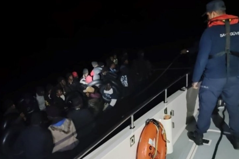 Ekiplerce durdurulan lastik botta 45 düzensiz göçmen yakalandı.