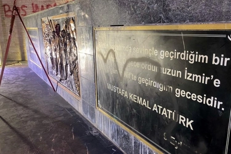 Anıtın duvarlarına 'Boş yapma Atatürk' ve hakaret içerikli sözler yazılırken, rölyefteki Atatürk kabartmasının yüzü de kırmızı boya ile boyandı. Anıttaki Atatürk'ün 'Benim naçiz vücudum, bir gün elbet toprak olacaktır. Fakat Türkiye Cumhuriyeti, ilelebet payidar kalacaktır', 'Bütün hayatımda sevinçle geçirdiğim bir gece vardır. O gece; ordumuzun İzmir'e girdiği günün burada geçirdiğim gecesidir' sözleri ise siyah boya ile karalandı.