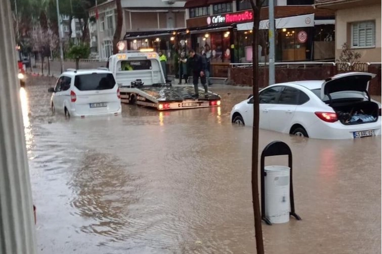 İzmir'in Dikili ilçesinde etkili olan sağanak yağış nedeniyle yollar göle döndü. Yarım saat etkili olan sağanak yağmur sebebiyle caddeler bazı iş yerleri sular altında kalırken trafikte suya gömülen araçlar mahsur kaldı. Meteoroloji tarafından İzmir için yapılan sağanak ve kuvvetli sağanak yağış uyarısının ardından yağmur, kentin kuzey ilçelerinden giriş yaptı. Dikili ilçesinde etkili olan sağanak yağış hayatı olumsuz etkilerken, ilçedeki bazı caddeler ve iş yerlerinde su baskını meydana gelirken iş yerlerine dolan suları tahliye etmeye çalışan esnaf zor anlar yaşadı. Caddelerde suların yükselmesi nedeniyle trafikteki araç sürücüleri zor anlar yaşadı. Caddede ilerlemeye çalışan belediye otobüsü ve otomobiller suya gömülürken, araç sürücüleri sel sularında mahsur kaldı. Sağanak yağışın gün boyunca etkili olacağı öğrenildi.