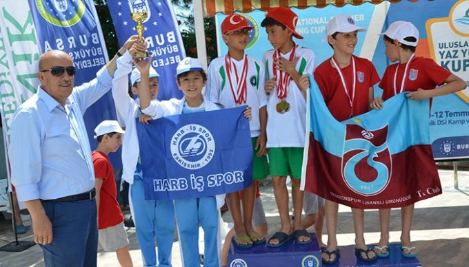 Bursa Büyükşehir Belediyesi Uluslararası 1. Yaz Yüzme Kupası, yurt içi ve yurtdışından 16 kulüp takımının katılımıyla 10-12 Temmuz tarihlerinde İznik Devlet Su İşleri Tesisleri Yüzme havuzunda yapıldı. Yaz Kupasının Şampiyonu Bursa Büyükşehir Belediyesi Spor Kulübü oldu. [dropcap type="3"]B[/dropcap]ursa Büyükşehir Belediyesi Uluslararası 1. Yaz Kupası’na Bursa Büyükşehir Belediye Spor Kulübü, Bursa Doğa Yüzme Spor Kulübü, Bursa Gençlik Hizmetleri Spor Kulübü, Bursa Kolejliler Spor Kulübü, Bursa Olimpik Sporlar Spor Kulübü, Bursa Egemen Gençlik Spor Kulübü, İnegöl Ortakçı Spor Kulübü, Eskişehir Su Sporları Spor Kulübü, Eskişehir Harbiş Spor Kulübü, Eskişehir Kamer Spor Kulübü, Trabzonspor Kulübü, Balıkesir Yıldız Kulaçlar Spor Kulübü, G.D. Sport S.C. Bulgaristan, Traverest S.C. Bulgaristan, Sandanski S.C Bulgaristan ve Sofya Levski S.C. Bulgaristan kulüplerinden toplam 300 sporcu katıldı. İznik Devlet Su İşleri Tesisleri Yüzme havuzunda gerçekleşen Uluslararası Yaz Yüzme Kupasının ödül törenine İznik Belediye Başkanı Osman Sargın, Ak Parti İlçe Başkanı Tamer Mahmut Hersek, Büyükşehir Belediye Spor Kulübü As Başkanı İlhan Satık, DSİ Destek Hizmetleri Şube Müdürü Esat Gürbüz,Belediye Başkan Yardımcısı Necati Tosun,İlçe Milli Eğtim Müdürü Mevlüt Semerci, Belediye Meclis Üyeleri Öner Erim ve Yusuf Biçer, Bursa Büyükşehir Belediyesi İlçe Koordinatörü Serkan Acar, DSİ İznik Tesis Amiri Mustafa Beki, 300 sporcu ve aileleri katıldı. 300 sporcunun yarıştığı Uluslararası Yaz Yüzme Kupasında, kurbağalama, karışık, sırt üstü, Serbest, Kelebek kategorilerinde minik sporcular kulvarda birbirleri ile kıyasıya yarıştı. Şampiyonlar kupalarını İznik Belediye Başkanı Osman Sargın ve Bursa Büyükşehir Belediye Spor Kulübü As Başkanı İlhan Satık’ın elinden alırken, dereceye giren kulüp ve sporculara ödülleri protokol üyeleri tarafından takdim edildi. Kupa töreninde konuşan İznik Belediye Başkanı Osman Sargın “ 10-12 Temmuz 2015 tarihleri arasında gerçekleşen 1.Uluslararası Yaz Yüzme Kupası’na katılan tüm sporculara ,antrenörlere ve kulüplere katılımlarından dolayı teşekkür ediyorum.3 gün boyunca süren bu organizasyonda siz değerli katılımcıları ilçemizde ağırlamaktan onur duyduk.Böyle bir organizasyonu ilçemize kazandıran başta Büyükşehir Belediye Başkanımız Sayın Recep Altepe’ye ve emeği geçen herkese teşekkür ediyor, dereceye giren tüm kulüpleri tebrik ediyorum” dedi. 1.Uluslararası Yaz Yüzme Kupası ödül töreninin ardından toplu fotoğraf çekimi ile sona erdi. (İznik Belediyesi)