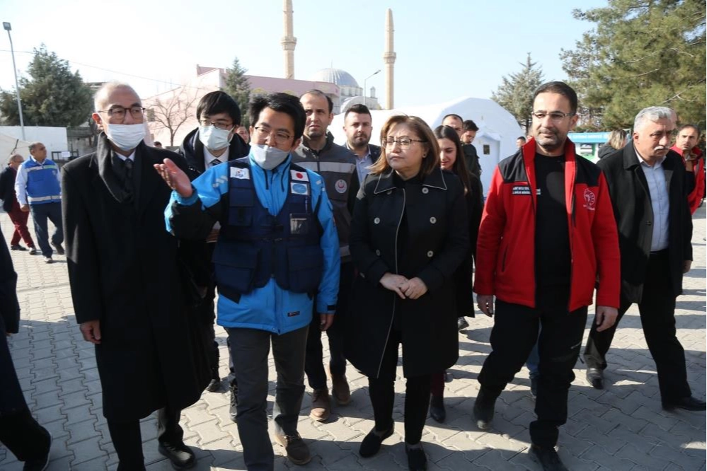 Gaziantep Büyükşehir Belediye Başkanı Şahin, Gaziantep’in Oğuzeli ilçesinde Japon ekip tarafından kurulan en büyük sahra hastanesini gezdi.