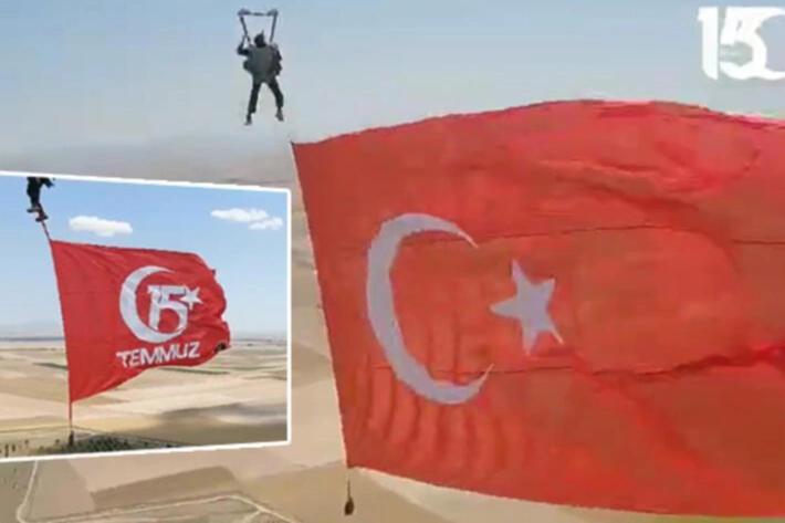 İçişleri Bakanı Ali Yerlikaya, sosyal medya hesabı üzerinden 15 Temmuz darbe girişimi adına videolu bir paylaşım yaptı. Bakan Yerlikaya’nın paylaştığı videoda JÖAH’a bağlı paraşütçülerin gökyüzünde Türk bayrağını dalgalandırdığı anlar yer aldı. “Benim de şu cihandan gidişim, memleket sevdasından” sözleriyle yayınlanan paylaşımda, “Jandarma Özel Asayiş Komutanlığımıza (JÖAH) bağlı paraşütçülerimiz nazlı hilâlimizi gökyüzünde gururla dalgalandırdı. Bu güzel vatanın yiğit evlatlarına kıymaya kalkan hainler, şanlı bayrağımızın bizler için ne anlam ifade ettiğini, onun uğruna neler yapabileceğimizi hiçbir zaman anlamadılar, anlayamayacaklar” ifadeleri yer aldı.
