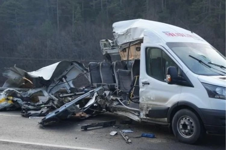 Çarpışmanın etkisiyle yolcu taşıyan servis minibüsü kağıt gibi yırtıldı. Meydana gelen kazada minibüste yolcu konumunda bulunan A.R., S.K., E.Y., Sevgi Sarıoğlu ve kamyon sürücüsü D.D. yaralandı.