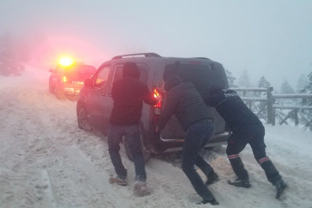 Manisa'nın Spil Dağı Milli Parkı'na kar keyfi yaşamak için çıkan onlarca vatandaş, aniden bastıran tipide mahsur kaldı.