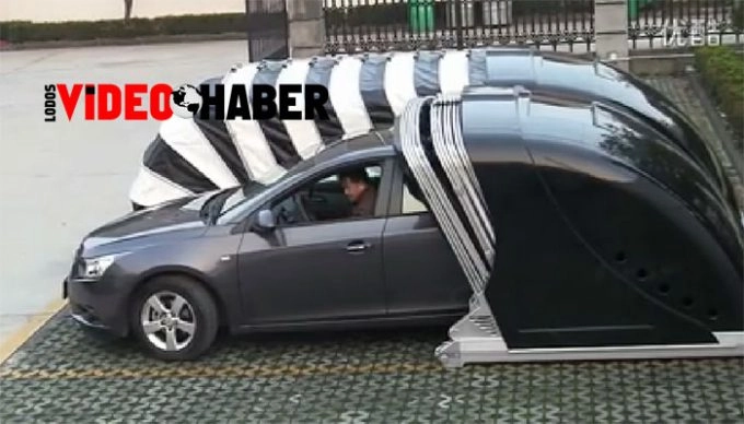 Çin'de üretilen son model kişiye özel portatif araba garajları büyük ilgi görüyor. Tamamen mekanik bir sistemle çalışan garajlar her araca uygun olarak üretiliyor. İşte, Çin işi portatif garajın videosu; [mfb_video url="https://www.facebook.com/trendinginchina/videos/vb.423670114403144/591073650996122/?type=2&theater" size="500" mbottom="50"]