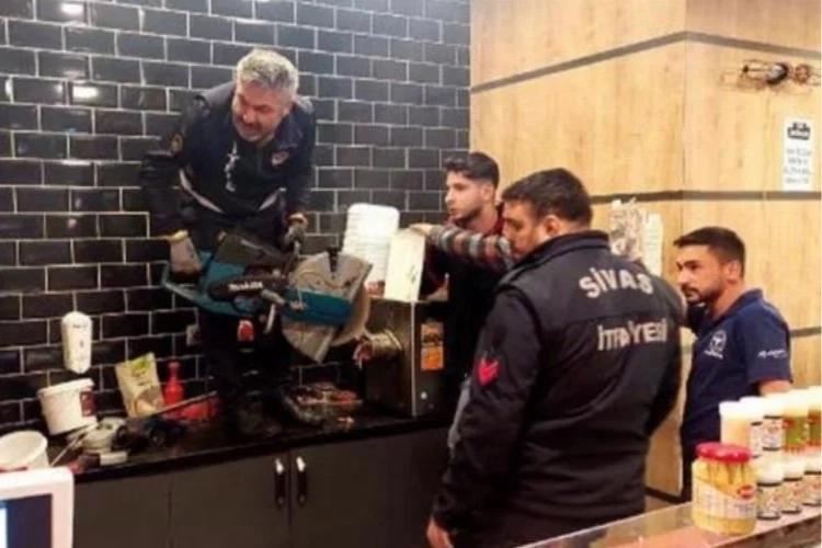 Sivas'ta kasap dükkanında çalışan Burak Yalçın (20), et çekimi sırasında sağ kolunu kıyma makinesine kaptırdı. Yalçın, itfaiye ekiplerinin müdahalesinin ardından kıyma makinesiyle birlikte hastaneye kaldırıldı.
