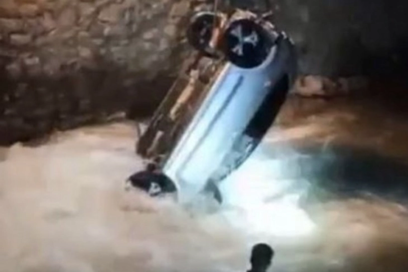 Uludere Yeşilova Mahallesi'nde Ferhat Bilen yönetimindeki plakası öğrenilmeyen otomobil, bilinmeyen bir nedenle yoldan çıkarak dereye uçtu.