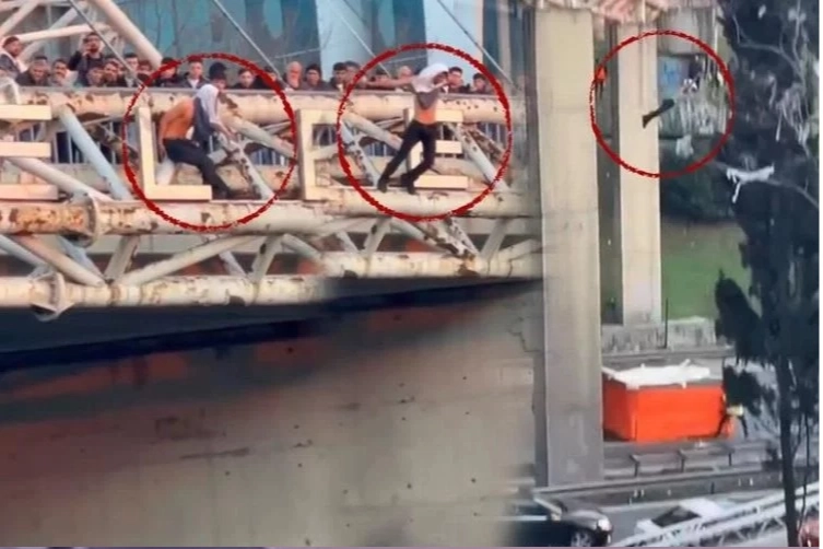 Köprüden atlayan şahıs itfaiyenin açtığı hava çadırına düştü.
