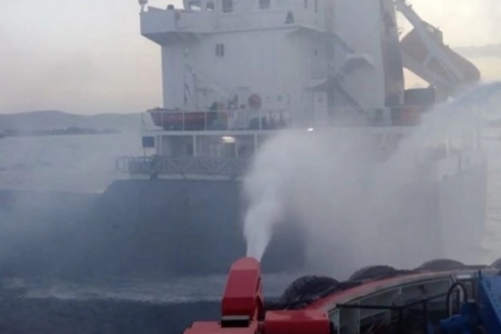 Çanakkale Boğazı'nda bir kuru yük gemisinin makine dairesinde yangın çıktı.