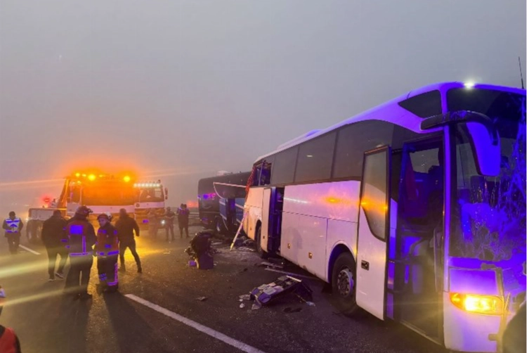 Alınan bilgiye göre, otoyolun İstanbul yönü Dağdibi mevkisinde aralarında 3 otobüs ve bir tırın da bulunduğu 7 araç henüz belirlenemeyen nedenle zincirleme kaza yaptı.