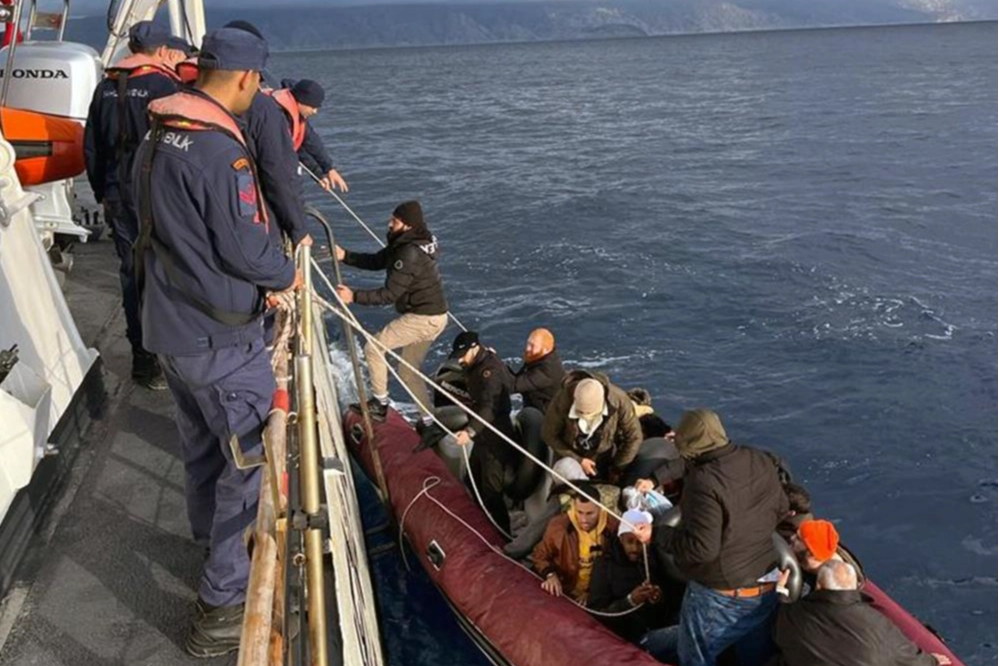 Muğla’nın Marmaris ilçesinde Yunanistan unsurları tarafından Türk karasularına geri itilen 62 düzensiz göçmen kurtarıldı. Marmaris ilçesi açıklarında sabah ve akşam saatlerinde lastik botlar içinde açık denizde sürüklenen düzensiz göçmenler olduğu bilgisini alan Türk Sahil Güvenlik ekipleri, bölgeye kurtarma botu sevk eti. Yunanistan güvenlik unsurlarınca Türk Karasularına geri itilen lastik botla içerisindeki 62 düzensiz göçmeni kurtarıldı.