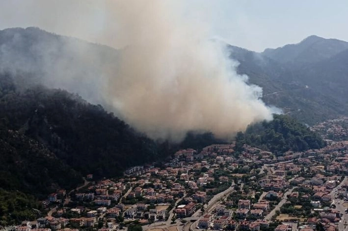 Muğla'nın Marmaris ilçesinde ormanlık alanda çıkan yangına havadan ve karadan müdahale ediliyor.