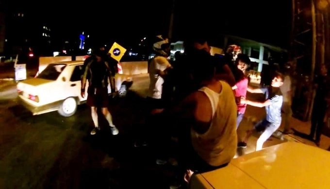 Antalya’da meydana gelen trafik kazasında taraflar arasında kavga çıktı. Motosikletli bir grubun içerisindeki sürücünün kask kamerasına yansıyan kavgada taş, sopa, levye ve bıçaklar konuştu.Olay, 31 Temmuz akşamı Muratpaşa ilçesi Kızılırmak Caddesi üzerinde meydana geldi. Edinilen bilgiye göre, yol yapım çalışmaları nedeniyle tali yola devam ettirilen yola dönmekte olan bir otomobile, hemen yan tarafından aynı istikamete dönmekte olan bir minibüs hafifçe çarptı. Bunun üzerine arabadan inen sürücü ve yolcular sözlü münakaşaya girdi. Sözlü münakaşa, hakaret ve küfre dönüşünce kavga çıktı. Bu sırada kazanın olduğu bölgeye doğru ilerlemekte olan motosikletli gruptan bir motosiklet sürücüsünün kask kamerası ise kavgayı saniye saniye kaydetti. Kavgayı ayırmaya çalışan motosikletli grup zor anlar yaşarken, olaya karışmadıklarına karşı tarafı ikna etmekte de güçlük çektiler.Masrafın 15 lira deyince çılgına döndüGörüntülerde otomobilde bulunan 2 kişi, araçta hasar olduğunu ve ödenmesini istedi. Aralarında kadın yolcuların da bulunduğu diğer araçtakilere küfür ve tehditler savuran otomobil sürücüsü, kazanın olduğu yerdeki bir vatandaşın ‘masrafın 15 lira’ demesi üzerine çılgına döndü. Eline otomobilinden çıkardığı sopayı alan öfkeli sürücü, arkadaşıyla birlikte kaza yerindeki vatandaşlara saldırdı. Hemen araca giren minibüstekiler ve sürücü ise olay yerinden uzaklaşırken, otomobil sürücüsü ile arkadaşı araca taşla saldırdı. Kendisine sopayla saldıran öfkeli sürücüye ise vatandaş bıçak çekerek karşılık verdi. Bu sırada otomobil sürücüsünün yanındaki arkadaşına ‘arabadan pompalıyı getir’ dediği duyuldu.Kavgayı ayıran motosikletlilere saldırdılarHer iki tarafı da ayırmaya çalışan motosikletli grubun sürücüleri bıçağı alarak vatandaşı olay yerinden uzaklaştırdı. Diğer sürücü de olay yerinden arkadaşıyla birlikte kaçtı. Bu sırada otomobil sürücüsünün arkadaşları kazayı duyup arkadaşlarına destek için olay yerine geldi. Motosikletli grubu kavgaya karışanlar zanneden öfkeli grup ile motosikletli grup arasında da küçük çapta tartışma yaşandı. Kazaya karışanları motosikletli grup zanneden vatandaşlar çevredeki vatandaşlar tarafından güçlükle ikna edildi.