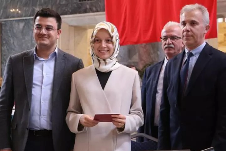 14 Mayıs'ta yapılan 28'inci Dönem Milletvekili Genel Seçimi'nin ardından mazbatasını alan milletvekilleri, TBMM'de kayıt işlemlerini sürdürüyor. Parlamentonun en genç üyesi olan AK Parti'li Zehranur Aydemir de bugün mazbatasını aldıktan sonra Mecliste kaydını yaptırdı. Aydemir'e kayıt işlemleri sırasında eşi Ömer Faruk Aydemir eşlik etti. Aydemir, yeni dönemin hayırlı olmasını dileyerek, "28'inci dönemin en genç milletvekili olarak sorumluluğumun farkındayım ve heyecanlıyım. İnşallah hem Ankara Milletvekili hem de Türkiye Büyük Millet Meclisi'nin en genç milletvekili olmanın sorumluluğunu en güzel şekilde hakkıyla teslim edebilmek nasip olur. Gençlerin sesi olarak Mecliste var olacağım, gençlerin hayallerini gerçekleştirmeye ve gençlere vaat ettiğimiz her çalışmanın hem takipçisi hem de gerçekleştiricisi olmak için var gücümle çalışacağım" dedi.
